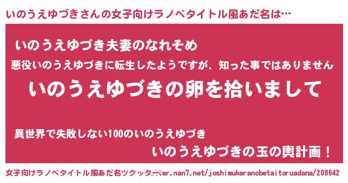 | 男性向けラノベタイトル風あだ名 | 『いのうえゆづきの嫁は女の子じゃないと思った?』 |