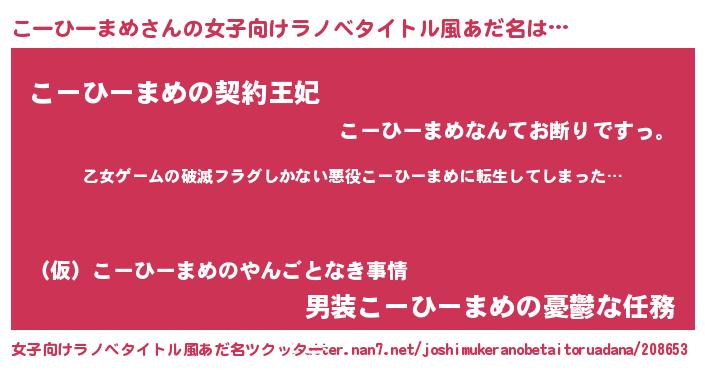 | ヘコむあだ名 | 『こーひーまめ(遠い目)』『こーもー』 |