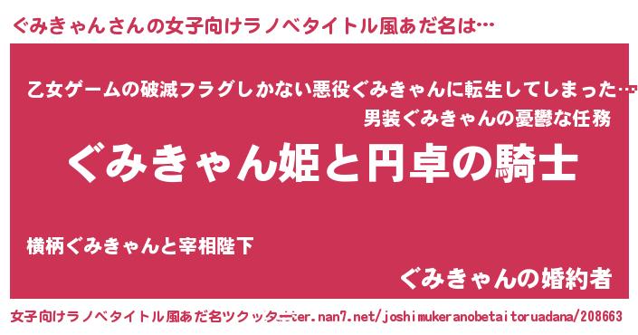 | 男性向けラノベタイトル風あだ名 | 『グミキャンアートオンライン』 |
