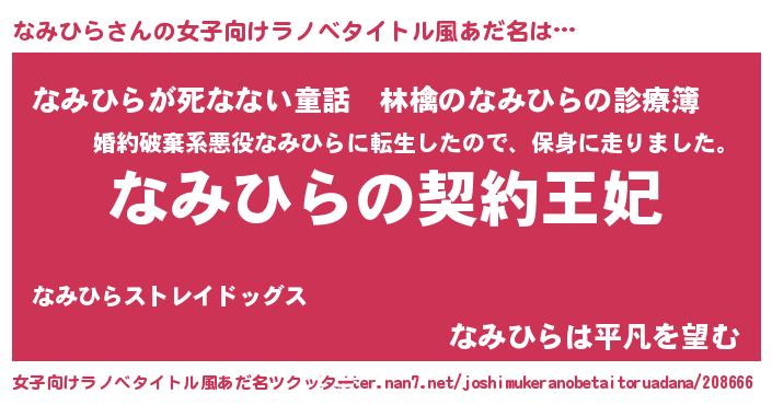 | 男性向けラノベタイトル風あだ名 | 『誰もが恐れるあのなみひらが、ぼくの専属メイドになるようです。』 |