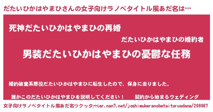 | 男性向けラノベタイトル風あだ名 | 『うちのだたいひかはやまひが世界を掌握している!』 |