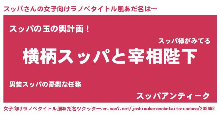 | 男性向けラノベタイトル風あだ名 | 『スッパに滅ぼされるだけの簡単なお仕事です』 |