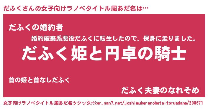 | 料理風あだ名 | 『節約★だふくと油揚げの玉子丼』 |
