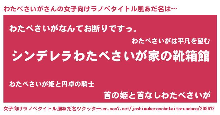 | 男性向けラノベタイトル風あだ名 | 『緋弾のワタベサイガ』 |