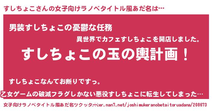 | 男性向けラノベタイトル風あだ名 | 『転生したらすしちょこだった件』 |