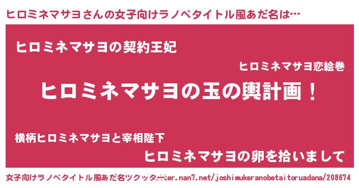 | ヘコむあだ名 | 『ヒロミネマサヨ(苦笑)』『ヒロを』 |