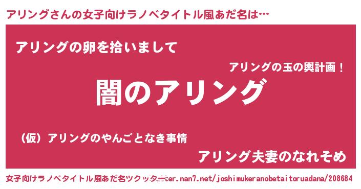 | 男性向けラノベタイトル風あだ名 | 『Re:アリングから始める異世界生活』 |