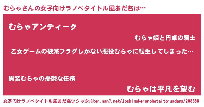 | ヒーロー風カッコイイあだ名 | 『仮面ムラダー』『サイバー戦士ムラャ』 |