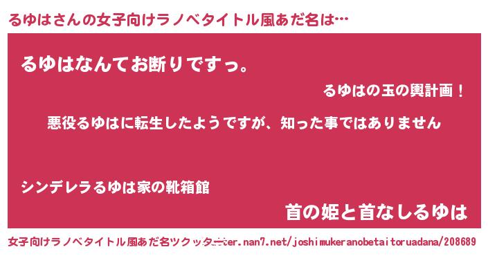 | 男性向けラノベタイトル風あだ名 | 『この素晴らしい世界にるゆはを!』 |