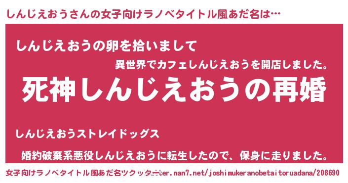 | 男性向けラノベタイトル風あだ名 | 『ノーゲーム・ノーシンジエオウ』 |