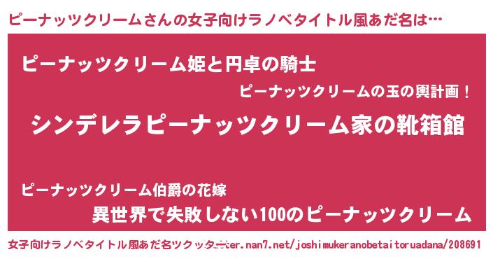 | 男性向けラノベタイトル風あだ名 | 『緋弾のピーナッツクリーム』 |