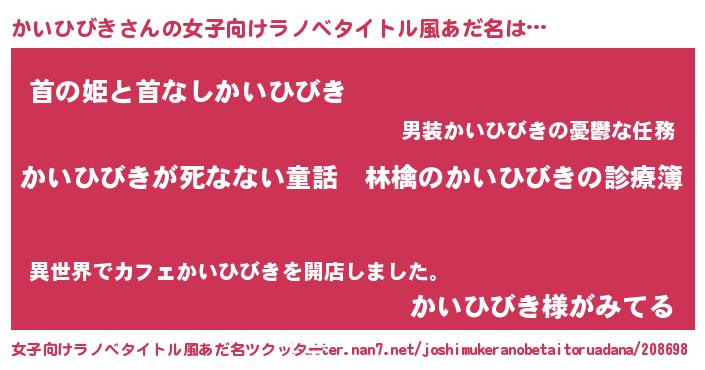 | 男性向けラノベタイトル風あだ名 | 『魔弾の王とかいひびき』 |