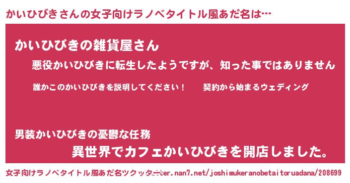 | 男性向けラノベタイトル風あだ名 | 『カイヒビキアートオンライン』 |