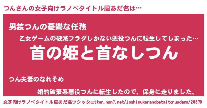 | 男性向けラノベタイトル風あだ名 | 『はたらくつんさま!』『ツンスレイヤー』 |
