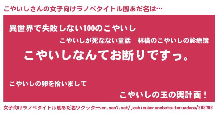 | 意味不明あだ名 | 『自称こやいし』『永久保存こやいし』 |