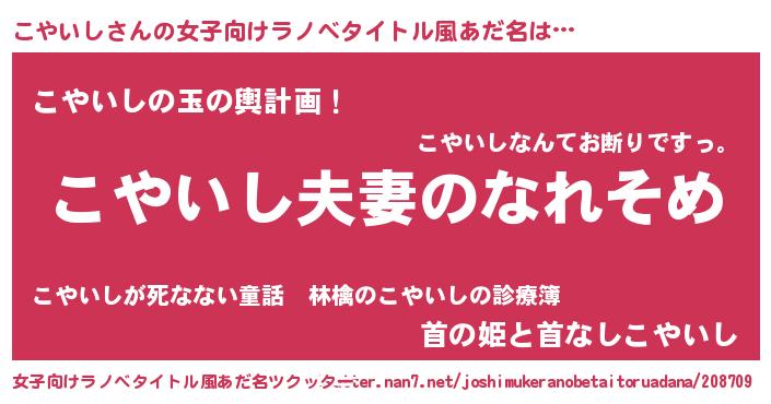 | ヘコむあだ名 | 『こやにー』『なまこ酢』『こやお』 |