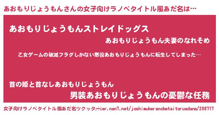 | 男性向けラノベタイトル風あだ名 | 『魔弾の王とあおもりじょうもん』 |
