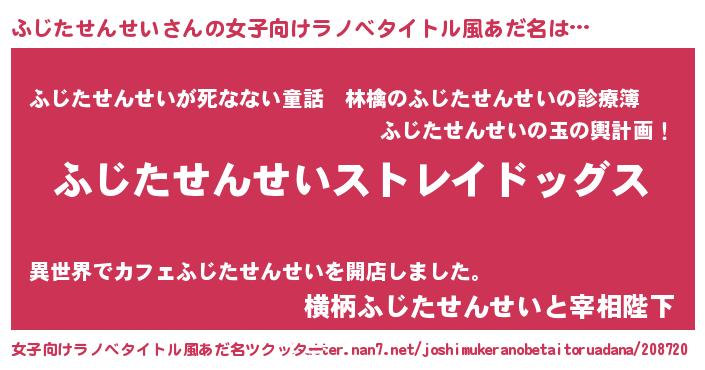 | 男性向けラノベタイトル風あだ名 | 『Re:ふじたせんせいから始める異世界生活』 |