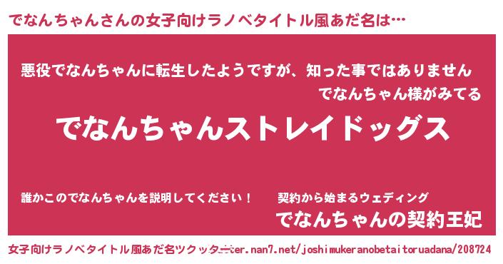 | 男性向けラノベタイトル風あだ名 | 『Re:でなんちゃんから始める異世界生活』 |