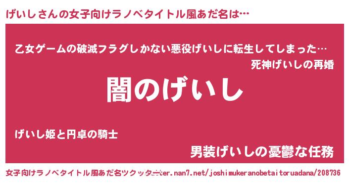 | 男性向けラノベタイトル風あだ名 | 『Re:げいしから始める異世界生活』 |