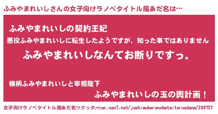| 男性向けラノベタイトル風あだ名 | 『魔法科高校のふみやまれいし』 |