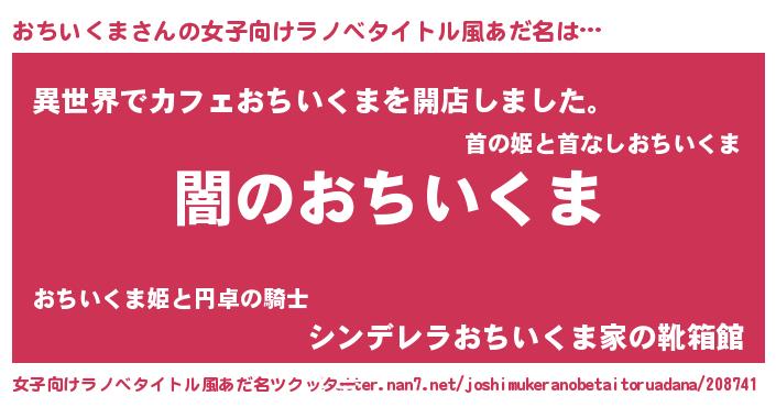 | 男性向けラノベタイトル風あだ名 | 『Re:おちいくまから始める異世界生活』 |