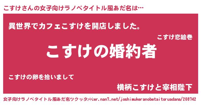 | 男性向けラノベタイトル風あだ名 | 『うちの娘の為ならば、俺はもしかしたらこすけも倒せるかもしれない。』 |