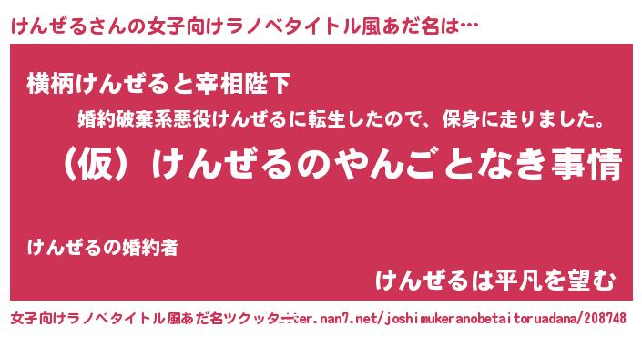 | 男性向けラノベタイトル風あだ名 | 『けんぜるの憂鬱』 |