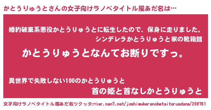 | 意味不明あだ名 | 『自称かとうりゅうと』 |