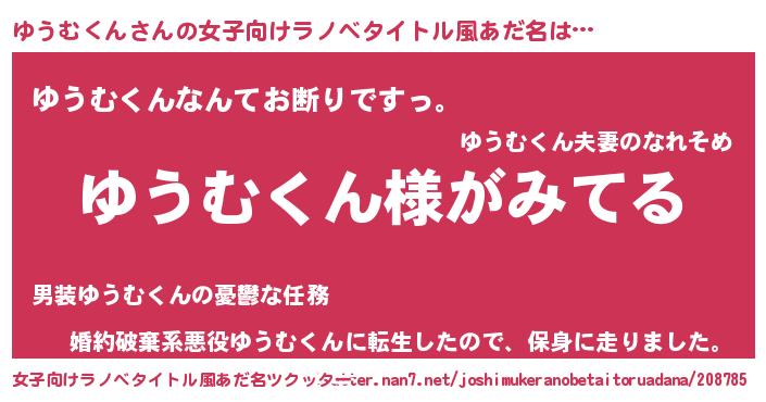 | 男性向けラノベタイトル風あだ名 | 『ゆうむくんの嫁は女の子じゃないと思った?』 |