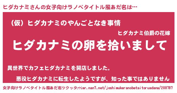 | 胡散臭い通販商品みたいなあだ名 | 『伝統あるペンダント…その名も「ヒダカナミ」』 |