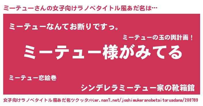 | ヒーロー風カッコイイあだ名 | 『炎刃騎士ミー』『超時空戦士ミーテュー』 |
