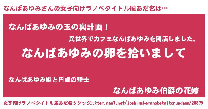 | 男性向けラノベタイトル風あだ名 | 『なんばあゆみの嫁は女の子じゃないと思った?』 |