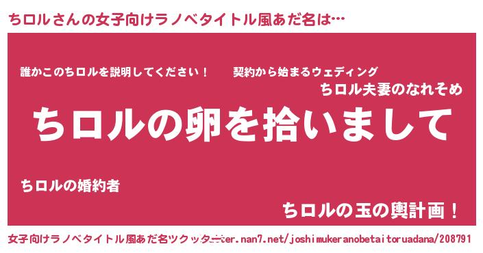 | 胡散臭い通販商品みたいなあだ名 | 『伝統あるネックレス…その名も「ちロル」』 |