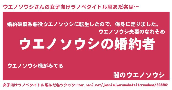 | 男性向けラノベタイトル風あだ名 | 『うちの娘の為ならば、俺はもしかしたらウエノソウシも倒せるかもしれない。』 |