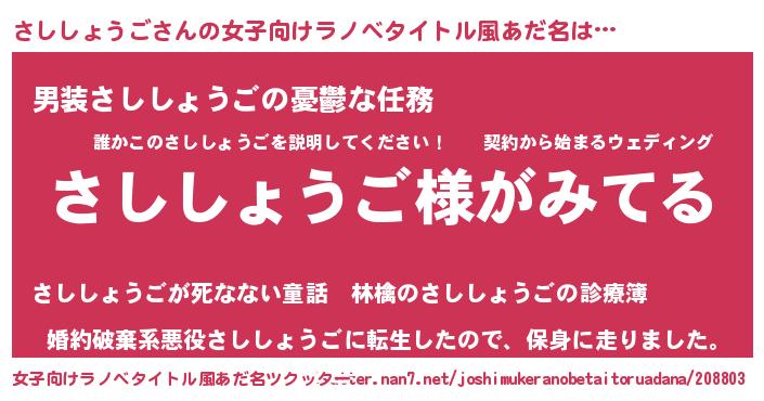 | 意味不明あだ名 | 『とにかく怪しいさししょうご』 |