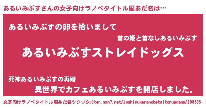 | 男性向けラノベタイトル風あだ名 | 『Re:あるいみぶすから始める異世界生活』 |