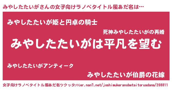 | 男性向けラノベタイトル風あだ名 | 『ダンジョンにみやしたたいがを求めるのは間違っているだろうか』 |