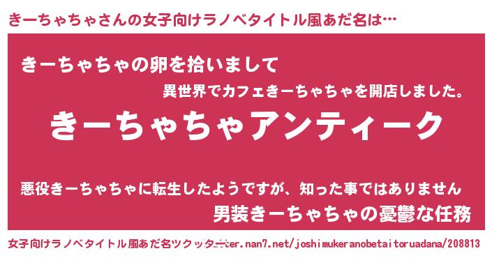 | 男性向けラノベタイトル風あだ名 | 『魔法科高校のきーちゃちゃ』 |