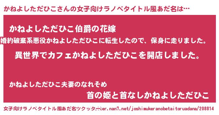 | 男性向けラノベタイトル風あだ名 | 『誰もが恐れるあのかねよしただひこが、ぼくの専属メイドになるようです。』 |