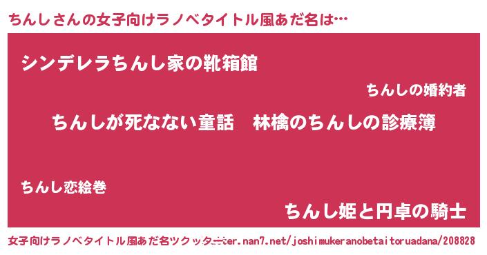 | 男性向けラノベタイトル風あだ名 | 『魔弾の王とちんし』『ちんしの憂鬱』 |