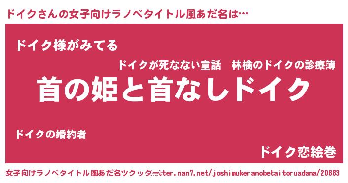 | 胡散臭い通販商品みたいなあだ名 | 『信頼と実績のサプリメント…その名も「ドイク」』 |
