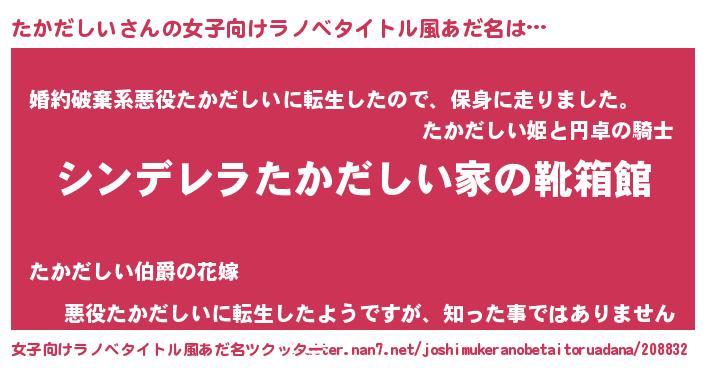 | 男性向けラノベタイトル風あだ名 | 『緋弾のタカダシイ』 |