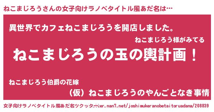 | 胡散臭い通販商品みたいなあだ名 | 『来世でも幸せになれる水素水…その名も「ねこまじろう」』 |