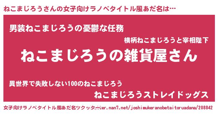 | ファンタジー風あだ名 | 『エターナルネコマジロウー』 |