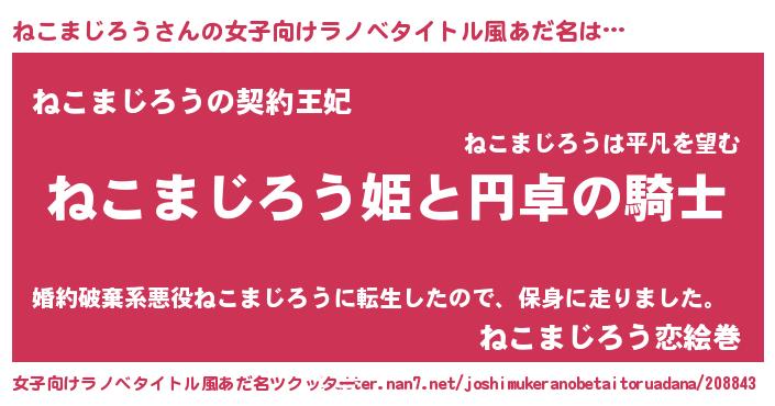 | 男性向けラノベタイトル風あだ名 | 『ネコマジロウアートオンライン』 |