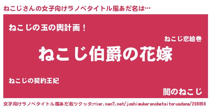 | 意味不明あだ名 | 『ねこじフォーエバー』『自称ねこじ』 |