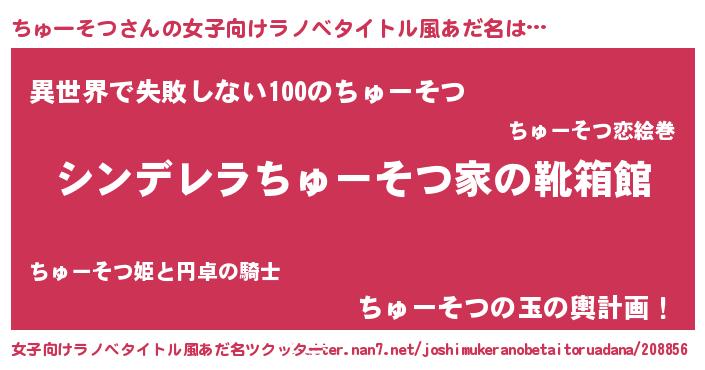 | 胡散臭い通販商品みたいなあだ名 | 『絶対に幸福をもたらす水素水…その名も「ちゅーそつ」』 |