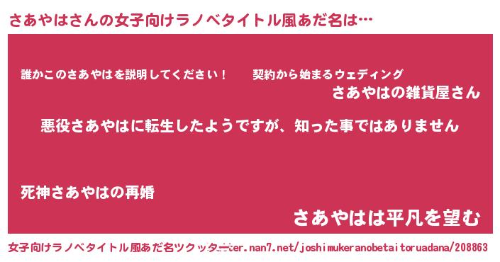 | 男性向けラノベタイトル風あだ名 | 『この素晴らしい世界にさあやはを!』 |