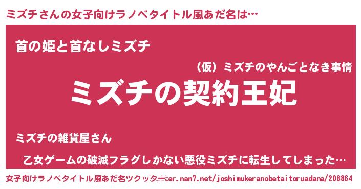 | 意味不明あだ名 | 『永久保存ミズチ』『ペロリンミズチ』 |